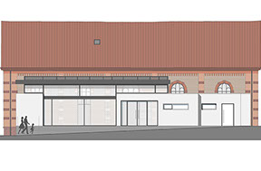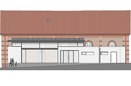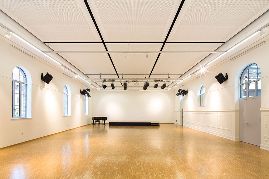 Umbau, Sanierung und Umnutzung der ehemaligen Turnhalle (Baujahr 1892) zu einer multifunktional nutzbaren Kultur- und Veranstaltungshalle. Anbau eines Foyers mit Garderobe und Nebenräumen.