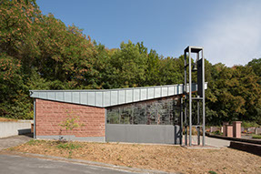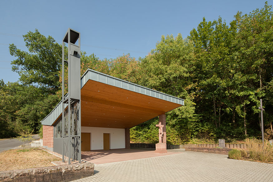Sanierung der Aussegnungshalle des Friedhofs Wüstenzell. Austausch der Dachdeckung und aller zugehörigen Bauteile sowie Abbruch des bestehenden Glockenturms und Erneuerung durch eine Stahlkonstruktion.