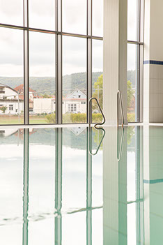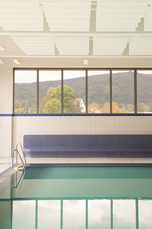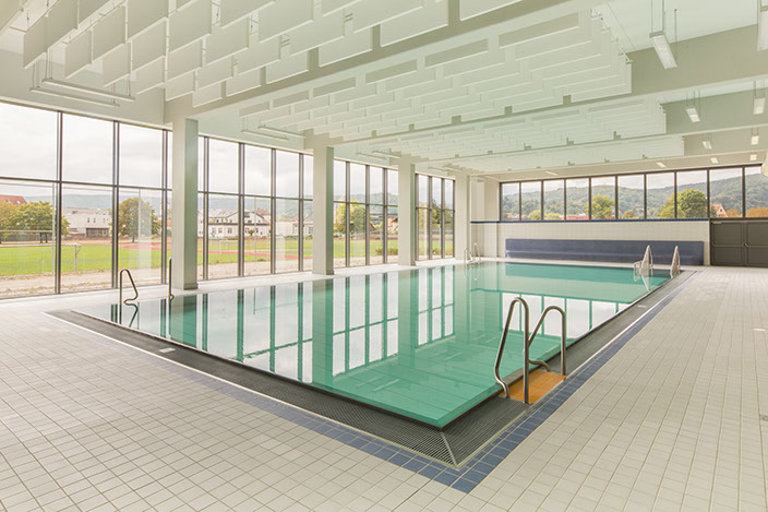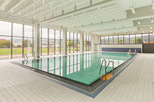Anbau einer „Kleinschwimmhalle“ an das bestehende Schwimmbad des Schul- und Sportzentrums Nägelsee, genutzt als Lehrschwimmbecken. Errichtung der Sanitär- und Umkleideräume sowie Einbau eines Variobeckens mit Hubboden für verschiedene Wassertiefen.