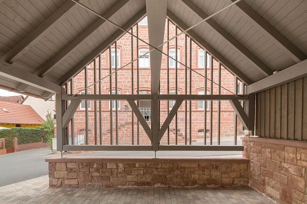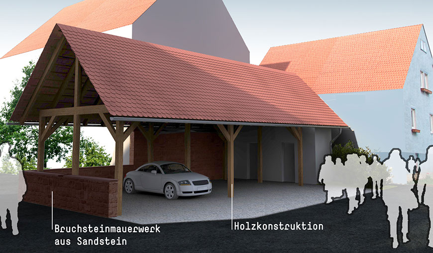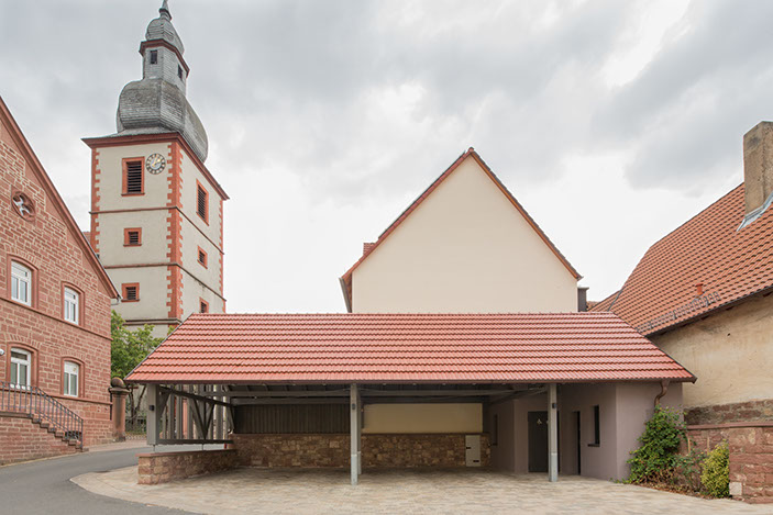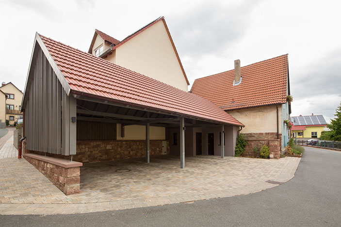 Errichtung einer Parkscheune mit öffentlichen Toiletten im Ortszentrum von Remlingen.