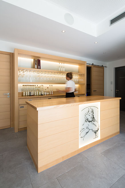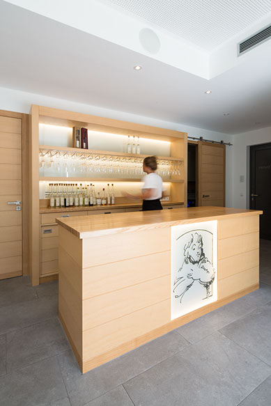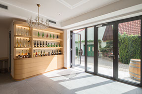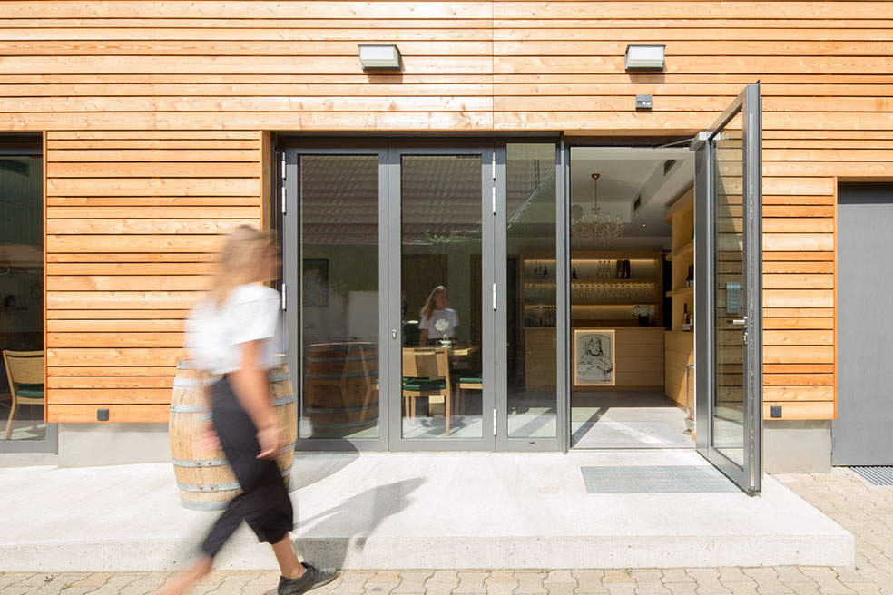 Umbau eines bestehenden Weinwirtschaftsgebäude zur Vinothek mit Frühstückspension im EG und 4 Gästezimmern im OG. Ausführung der Innenraumgestaltung und Einrichtung.