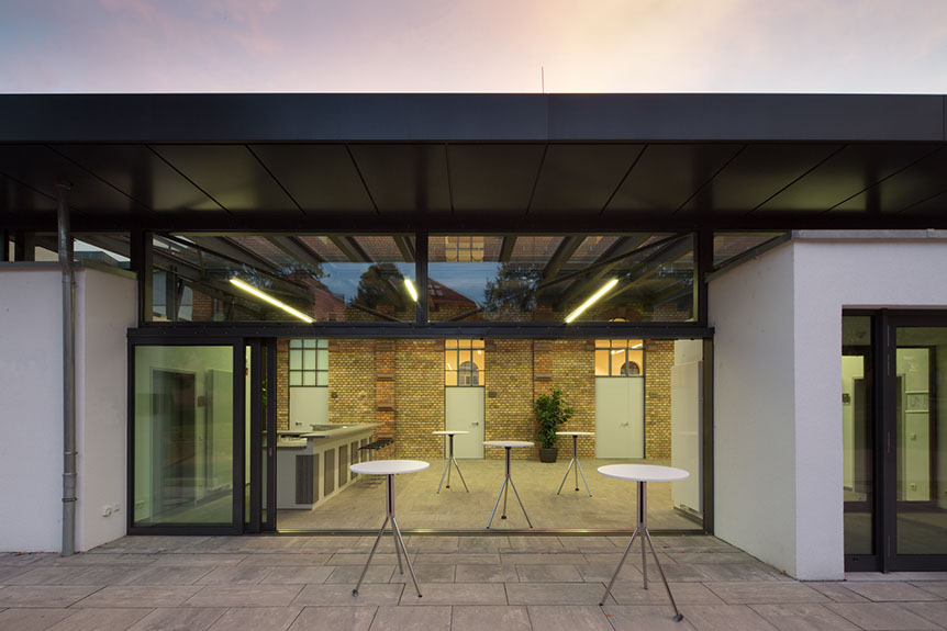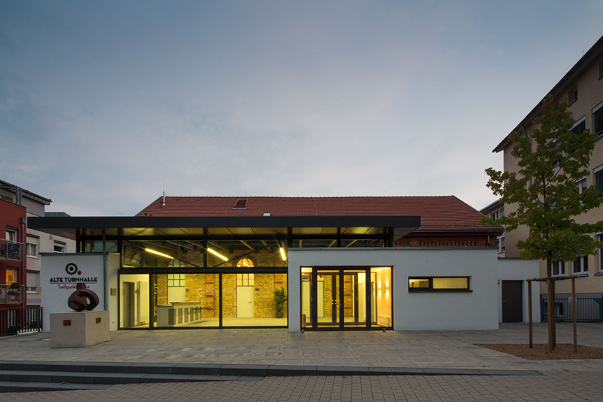 Umbau, Sanierung und Umnutzung der ehemaligen Turnhalle (Baujahr 1892) zu einer multifunktional nutzbaren Kultur- und Veranstaltungshalle. Anbau eines Foyers mit Garderobe und Nebenräumen.