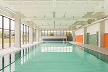 Anbau einer „Kleinschwimmhalle“ an das bestehende Schwimmbad des Schul- und Sportzentrums Nägelsee, genutzt als Lehrschwimmbecken. Errichtung der Sanitär- und Umkleideräume sowie Einbau eines Variobeckens mit Hubboden für verschiedene Wassertiefen.
