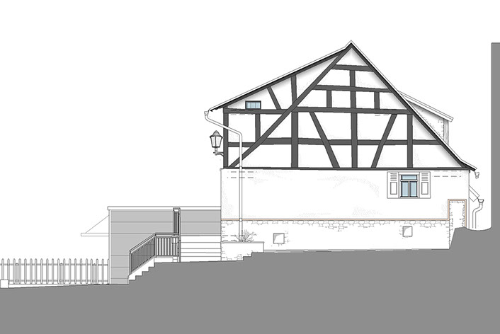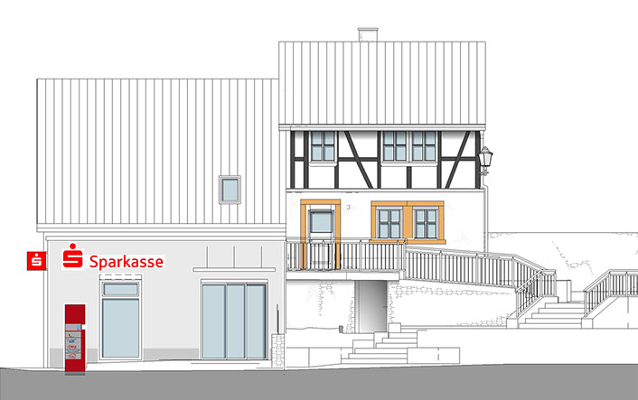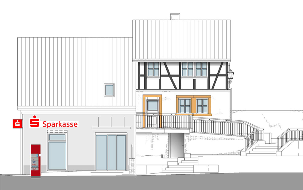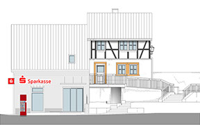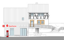 Umbau und Sanierung des bestehenden Wohnhauses zum Leo-Weismantel-Museum mit Anbau einer Sparkassenzweigstelle, Abbruch des vorhandenen Wohnhauses und Neugestaltung der Außenanlagen.